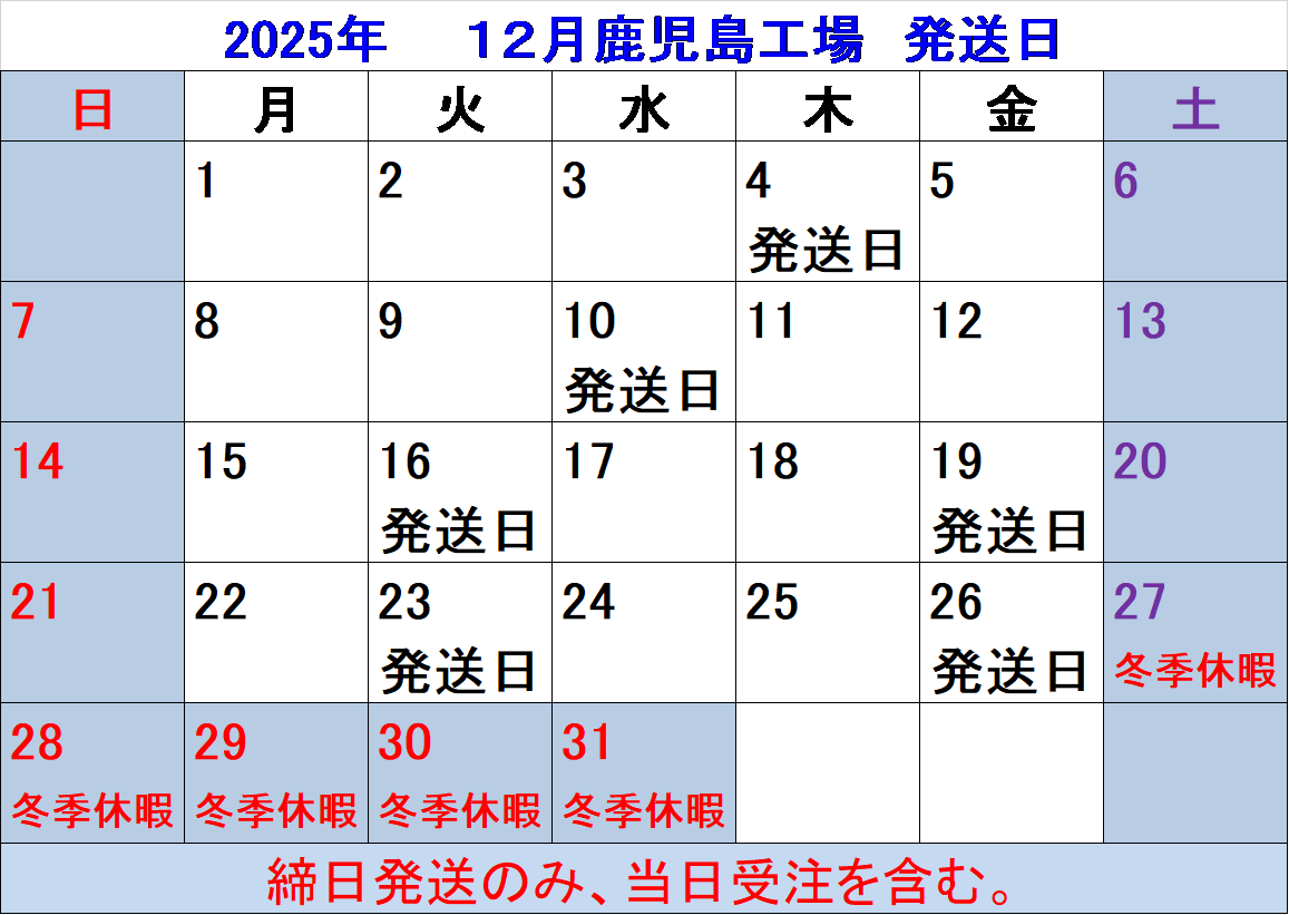 12月発送日のお知らせ